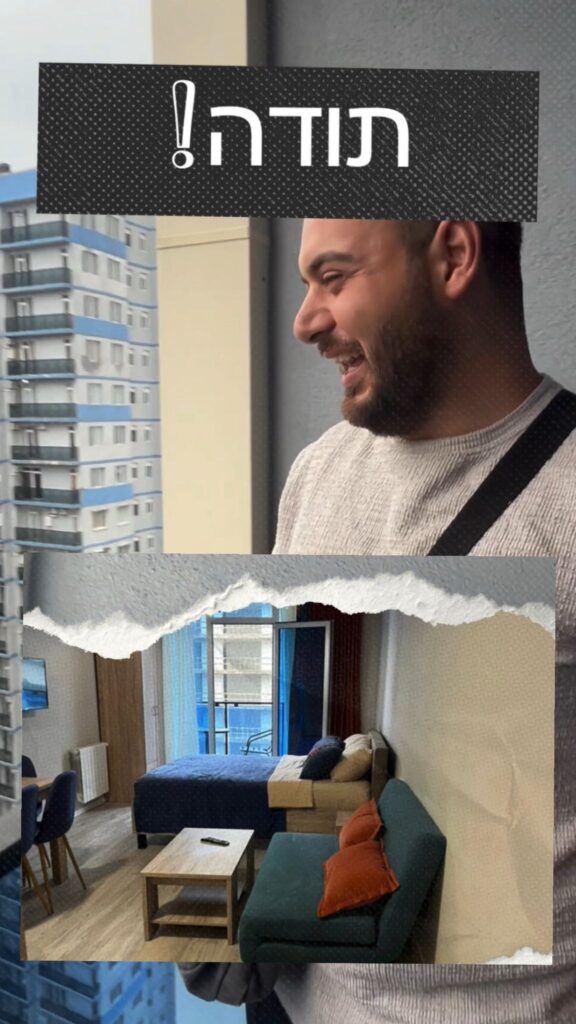 האירוח שלך בבטומי היה מעל ומעבר, לקחת אותנו בעצמך לראות את הדירה, והכל היה בדיוק כמו שסיפרת במשרד – אמין, שקוף ומרגיע.